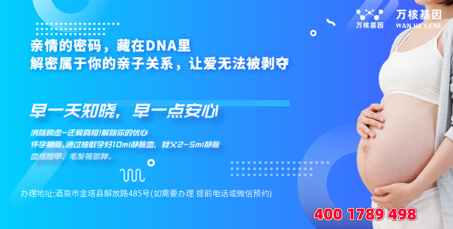 此外还有金塔亲子鉴定,如:怀疑孩子非亲生,又不想其他人知道的。当然,这只是其中的一些例子,更多鉴定问题在线咨询金塔亲子鉴定基因检测,办理地址:酒泉市金塔县解放路485号(如需要办理 提前电话或微信预约)-预约电话:4001789498。